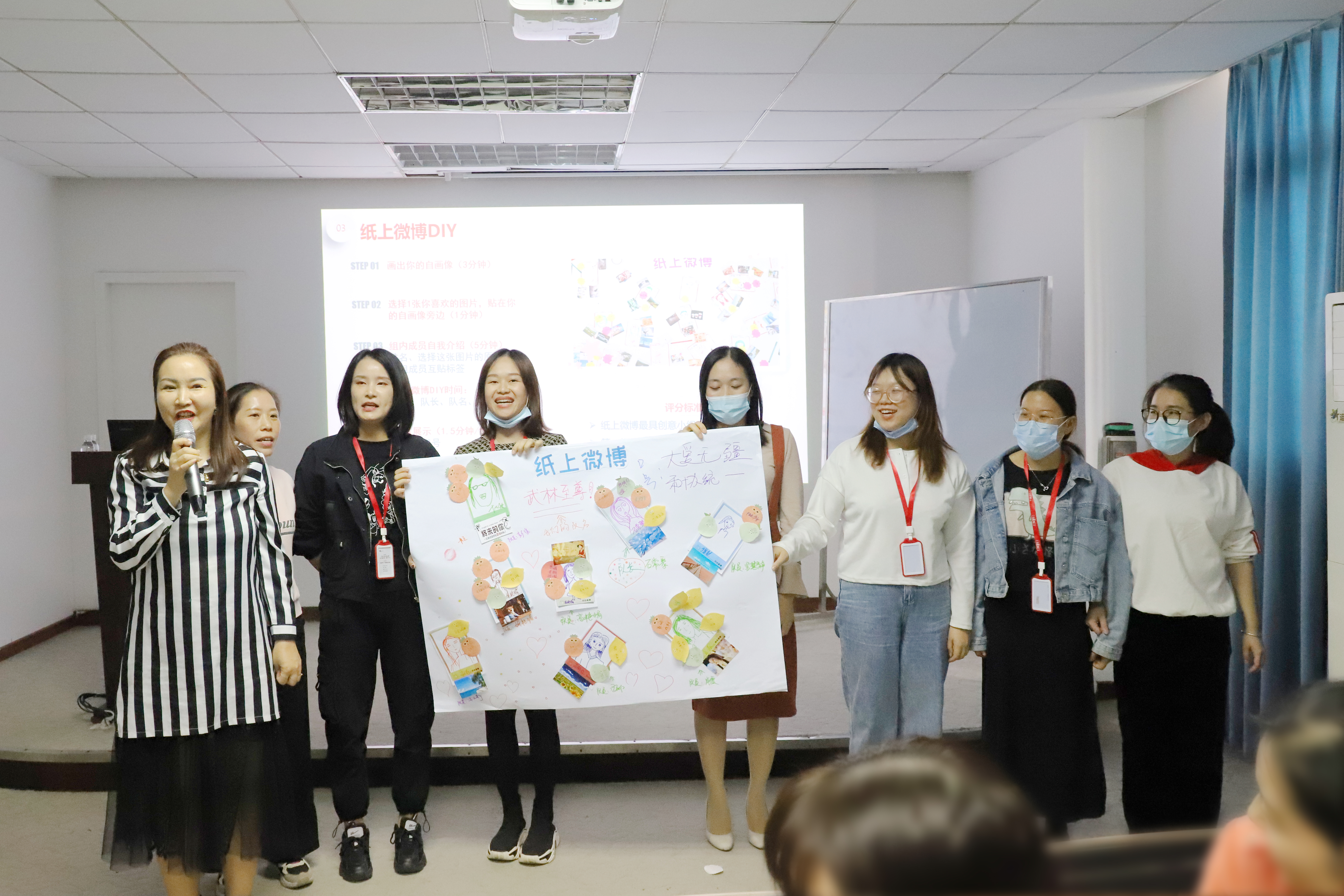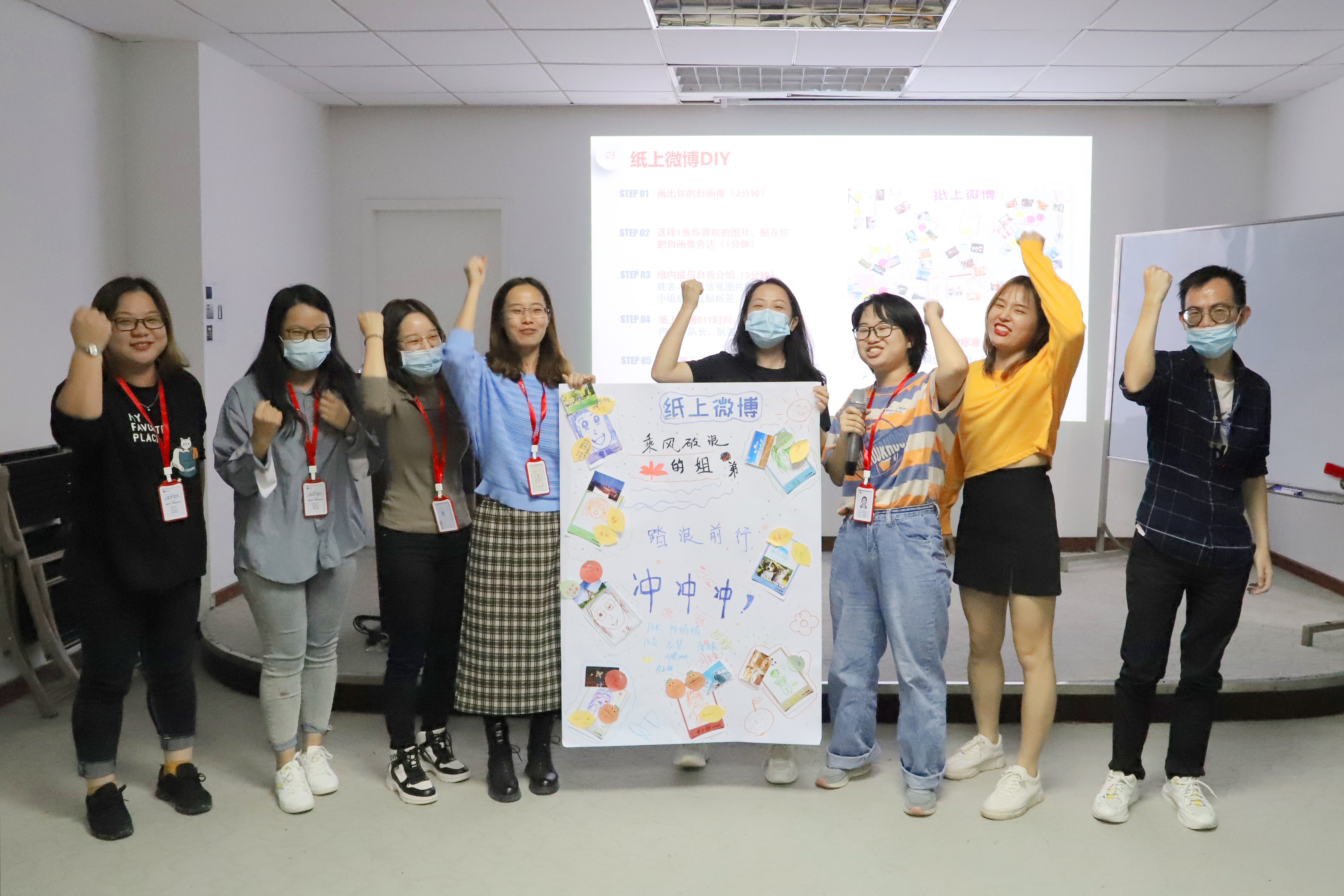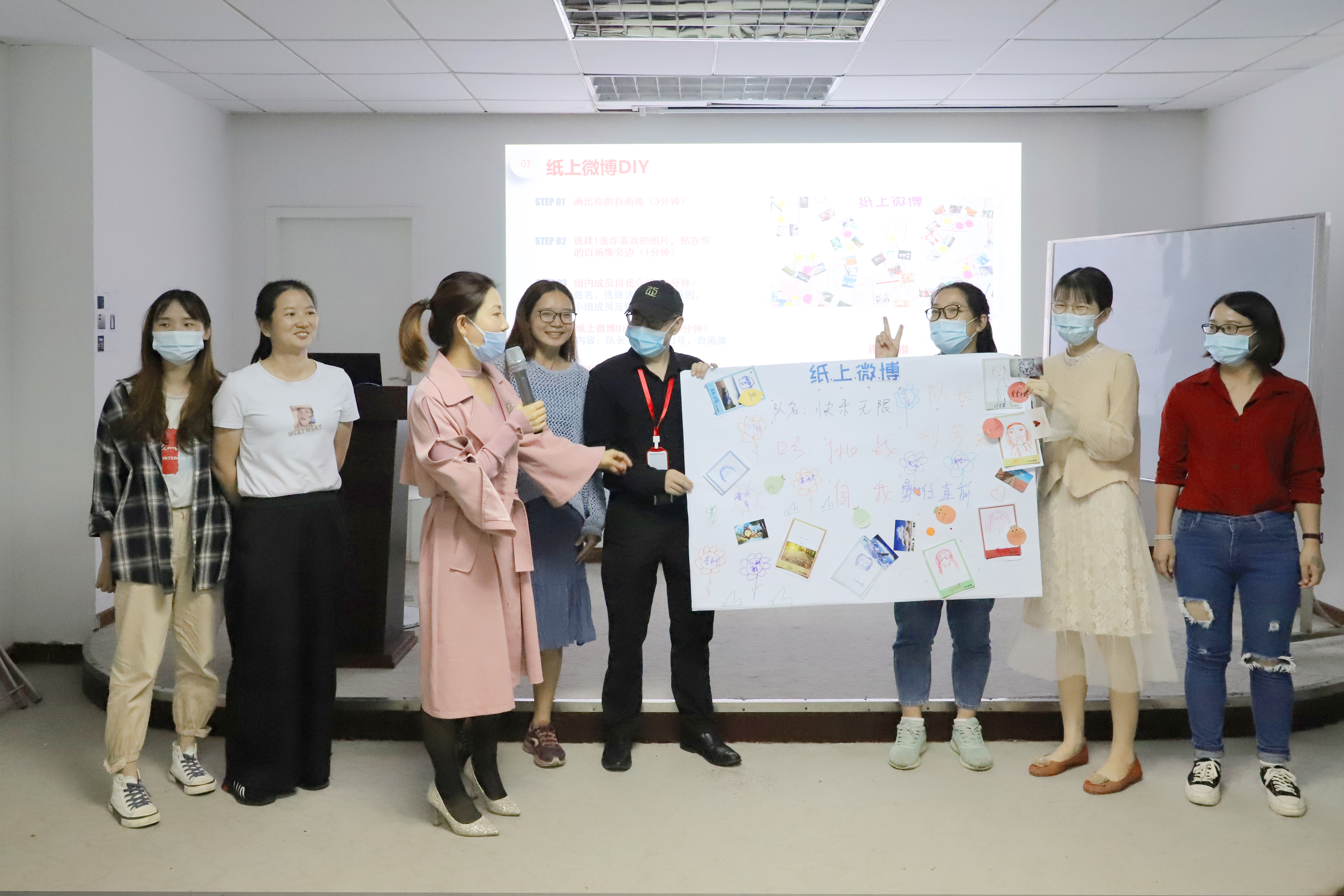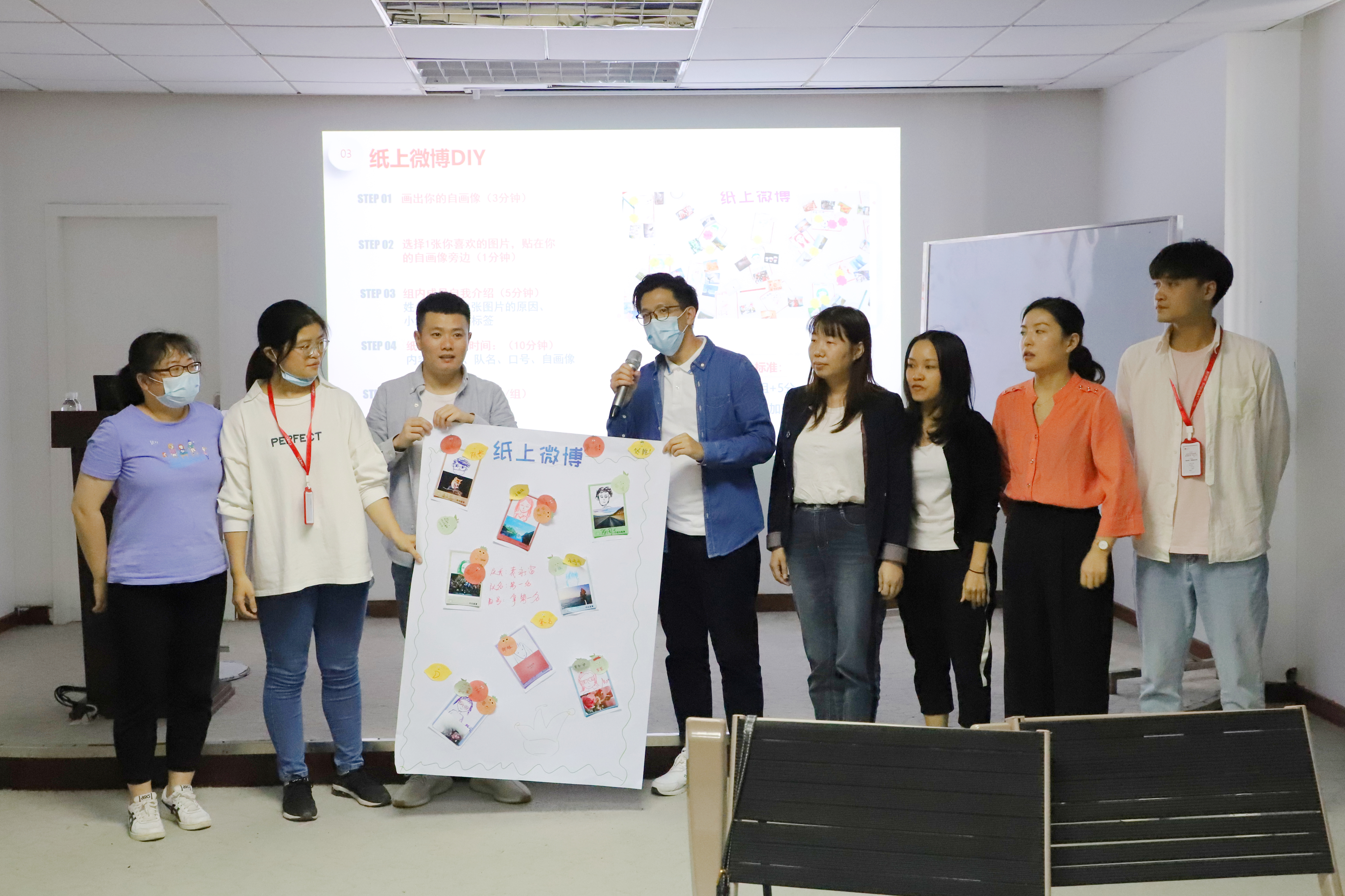 隨后,迎來了生動有趣的團隊破冰活動。此次活動項目紙上微博DIY——通過畫出自畫像、組內成員自我介紹、紙上微博DIY以及團隊展示,讓學員們通過游戲的形式迅速地認識自己前后左右的同學,打破相互之間的隔閡,快速地建立起信任。