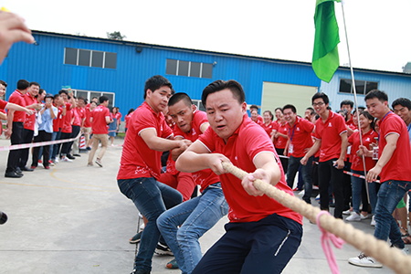 活動現(xiàn)場,沒有參加比賽的員工自發(fā)組成啦啦隊,在旁邊齊聲吶喊,為己方隊員加油助陣。最終,氣勢強勁的“二車間&倉儲聯(lián)隊”獲得冠軍,“飛翔隊”獲得亞軍,辦公室“玩美隊”獲得季軍。