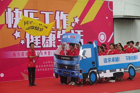 緊接著,一大幫來自“棟方二車間、倉儲聯(lián)隊”的老司機們,駕駛著“棟方奧鈴號運輸車”穩(wěn)穩(wěn)向前,喊出他們“追求卓越,不斷創(chuàng)新”的決心。