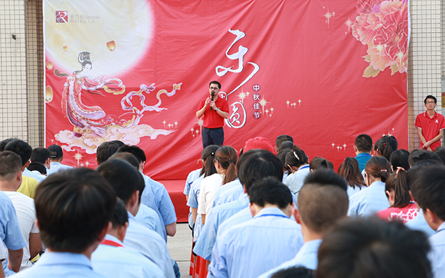 入場(chǎng)儀式結(jié)束后,棟方股份掌舵人唐董登臺(tái)致辭,向全體員工表達(dá)了最真摯的感謝和最誠(chéng)摯的中秋祝福。