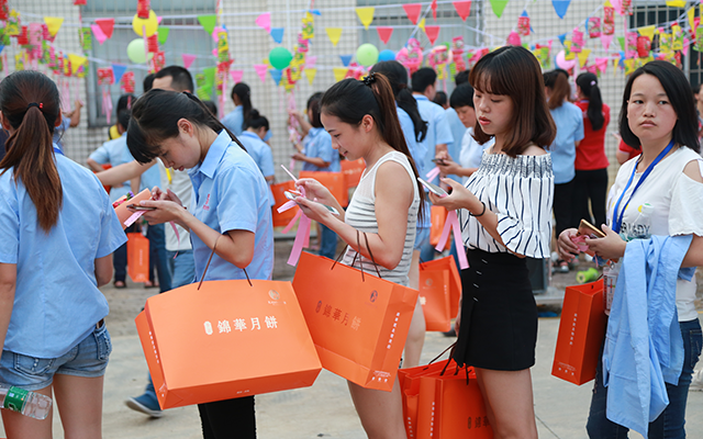 頒獎(jiǎng)結(jié)束后,是大家翹首以盼的月餅派發(fā)環(huán)節(jié),憑票兌換,秩序井然,現(xiàn)場(chǎng)一片溫情、歡喜洋溢。