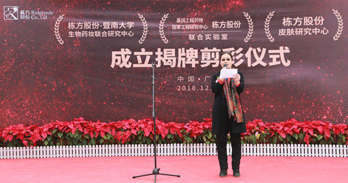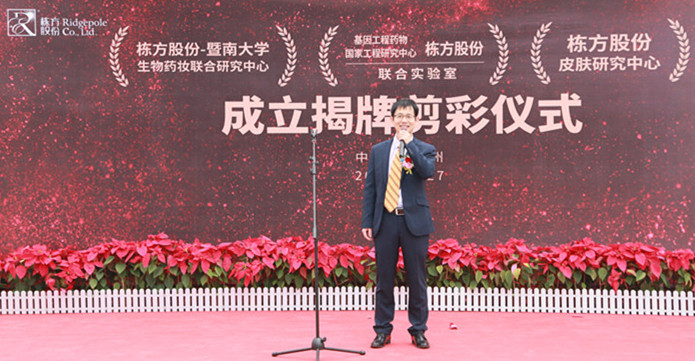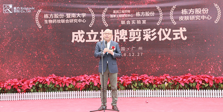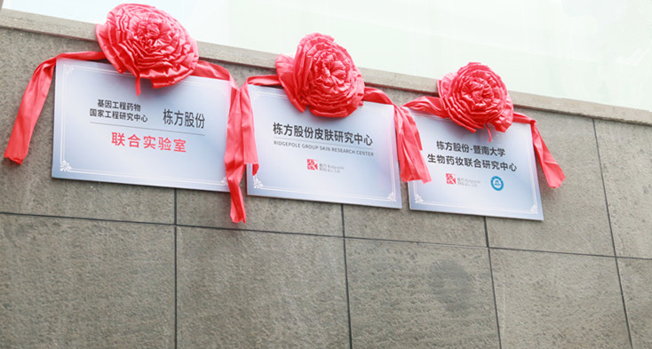 2018年12月27日上午,棟方股份技術(shù)合作揭牌剪彩活動在公司技術(shù)研究大樓一樓廣場隆重舉行,正式成立了“棟方股份--暨南大學生物藥妝聯(lián)合研究中心”、“棟方股份--基因工程藥物國家工程研究中心聯(lián)合實驗室”、“棟方股份皮膚研究中心”三大研究中心。此次生物藥妝技術(shù)重磅合作,在棟方技術(shù)創(chuàng)新發(fā)展史上具有重大里程碑意義。
