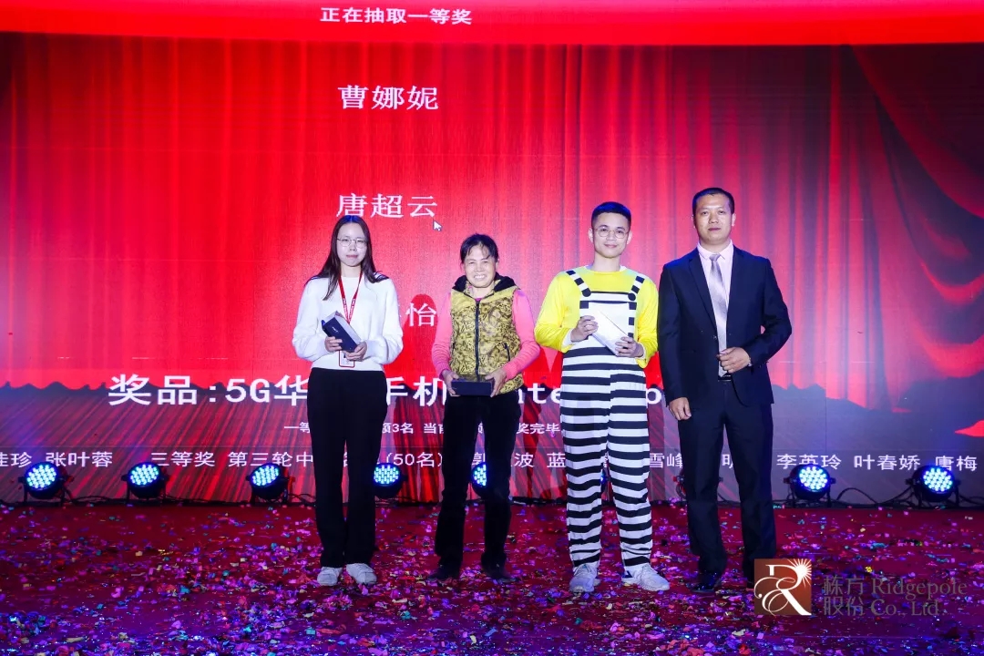 今年,公司為員工精心準(zhǔn)備的獎品除現(xiàn)金紅包、紀(jì)念金鈔外,還有華為手機以及萬元家庭游豪華大獎。