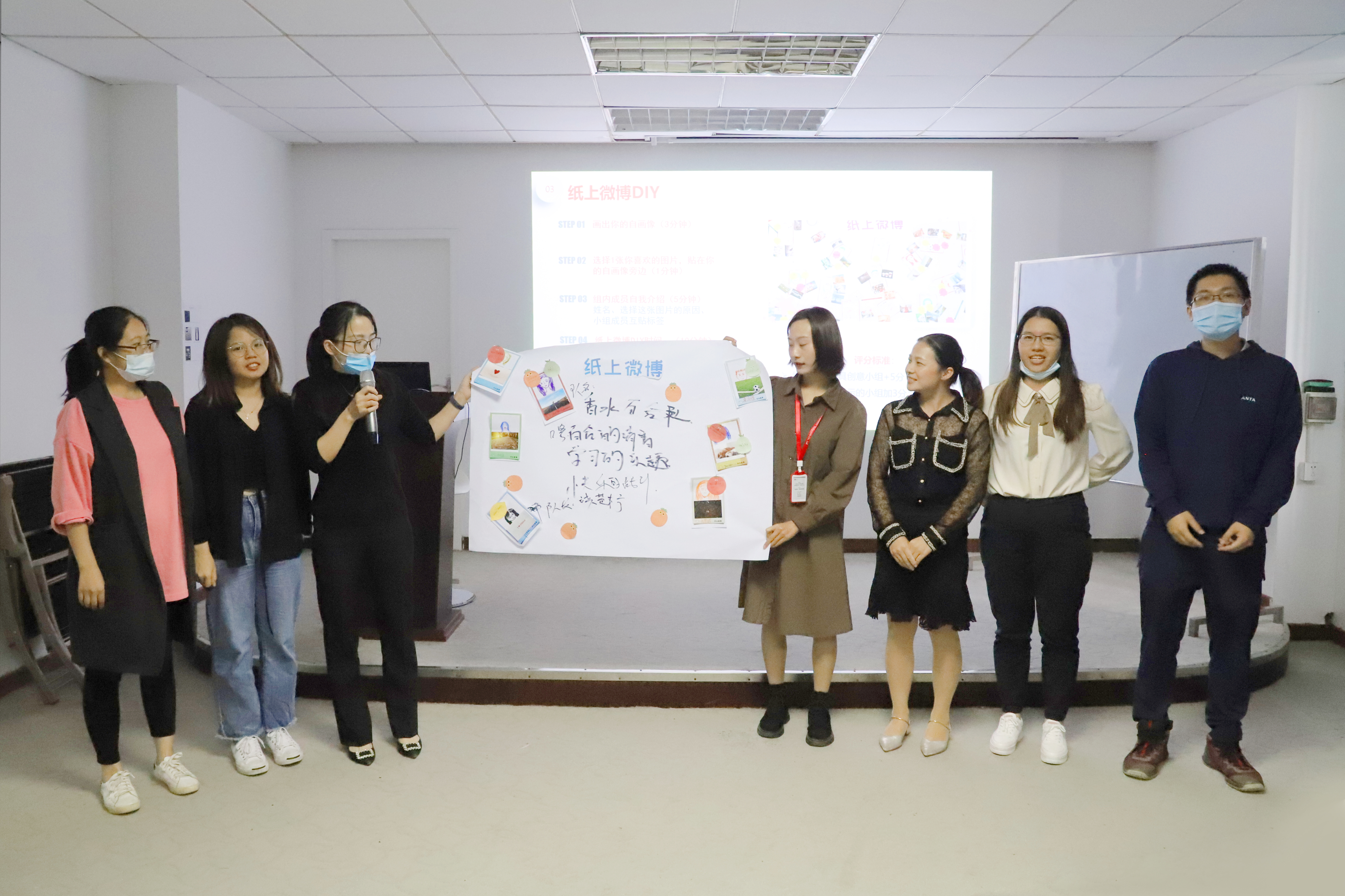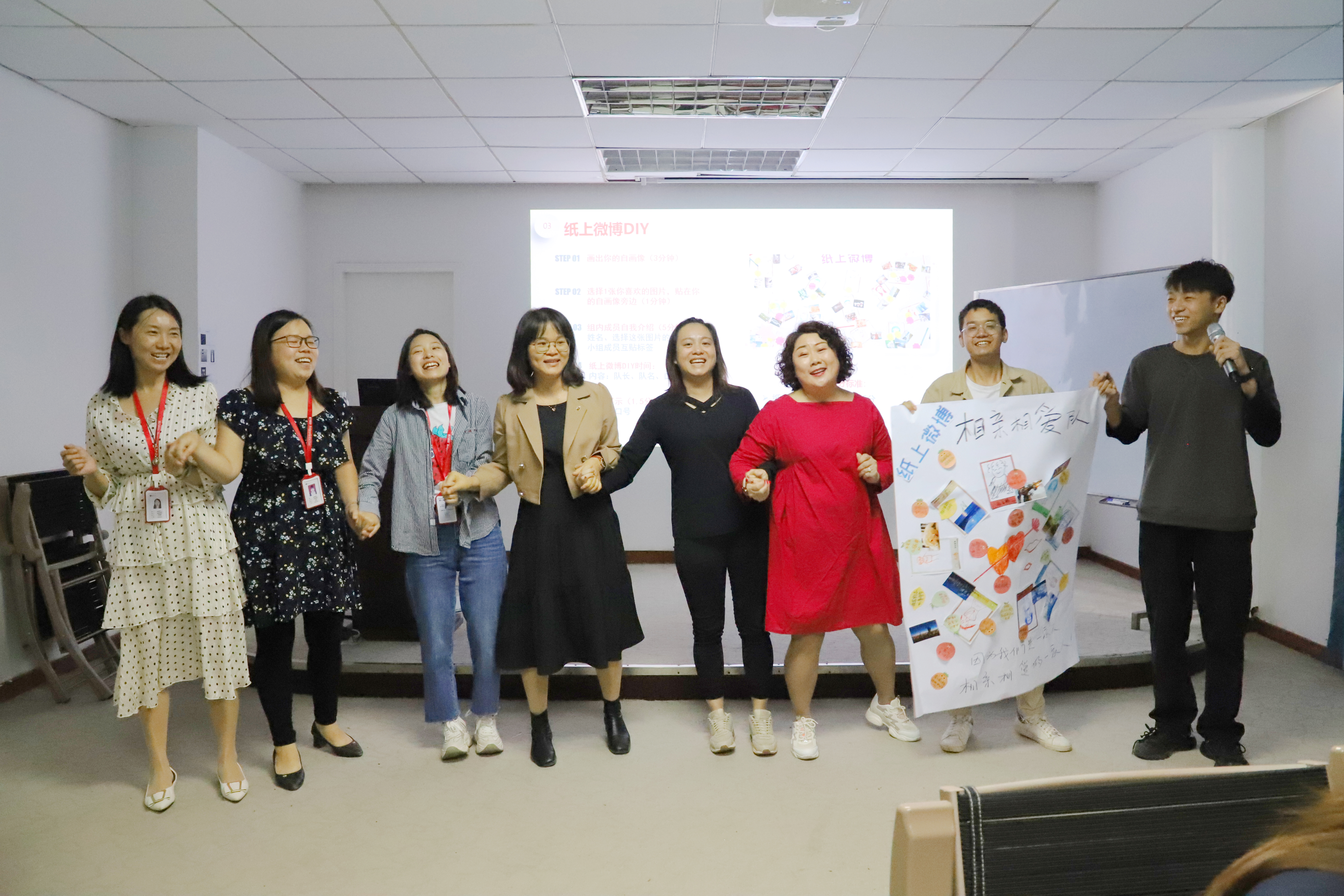 隨后,迎來了生動有趣的團隊破冰活動。此次活動項目紙上微博DIY——通過畫出自畫像、組內成員自我介紹、紙上微博DIY以及團隊展示,讓學員們通過游戲的形式迅速地認識自己前后左右的同學,打破相互之間的隔閡,快速地建立起信任。